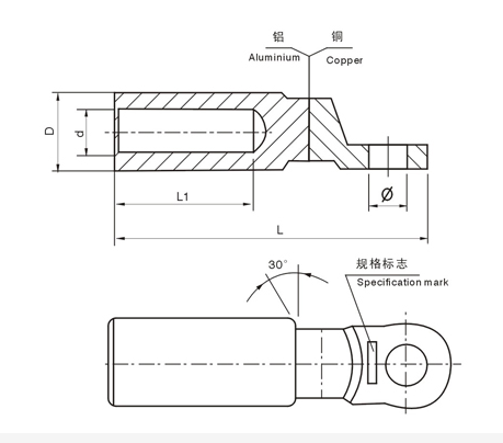 用途 : DTL系列銅鋁接線端子適用于配電裝置中各種圓型,半圓扇型鋁線,電力電纜與電氣設(shè)備銅端的過(guò)渡連接。使用鋁材為L(zhǎng)3,銅材為T2。產(chǎn)品采用磨擦焊工藝制造,具有焊縫強(qiáng)度高,通電性能好,抗電化腐蝕,使用壽命長(zhǎng)等等特點(diǎn)。