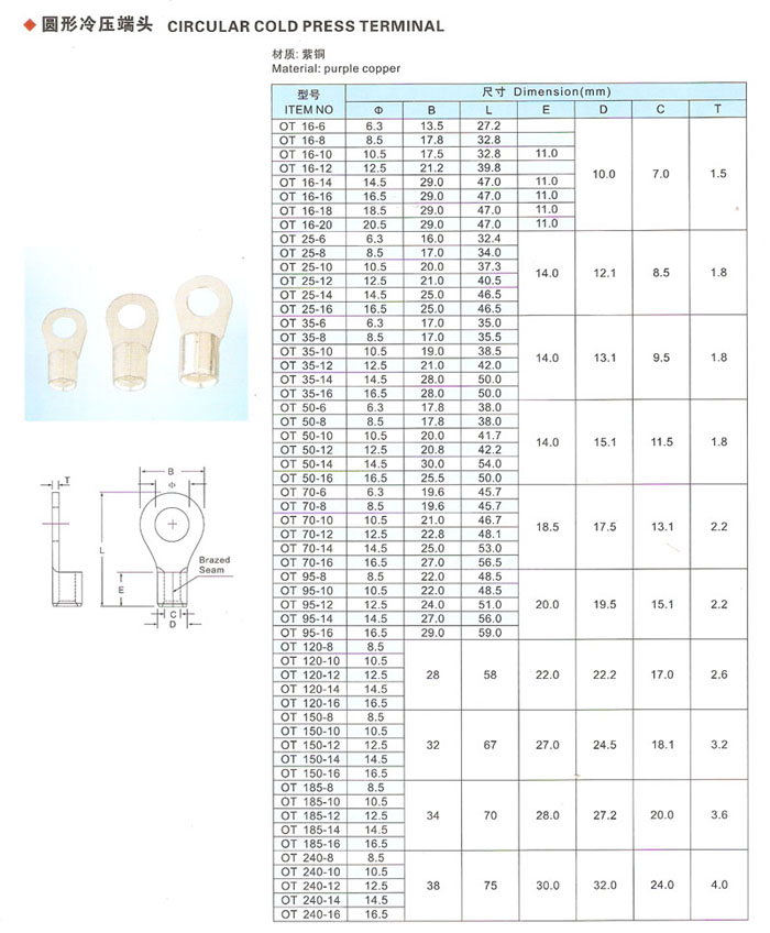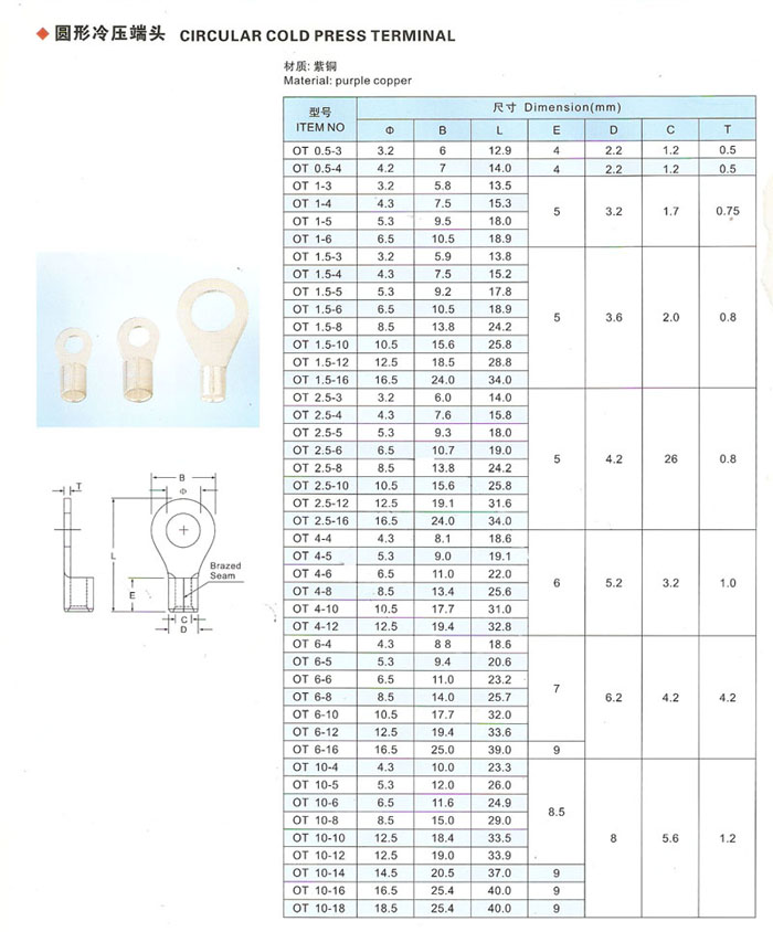 OT圓形鍍銀線鼻子 Home您現在的位置:網站首頁 >> 產品中心 >> 冷壓端子
